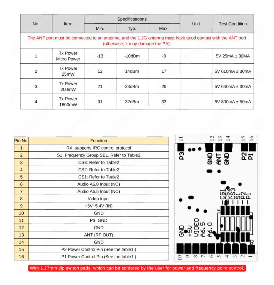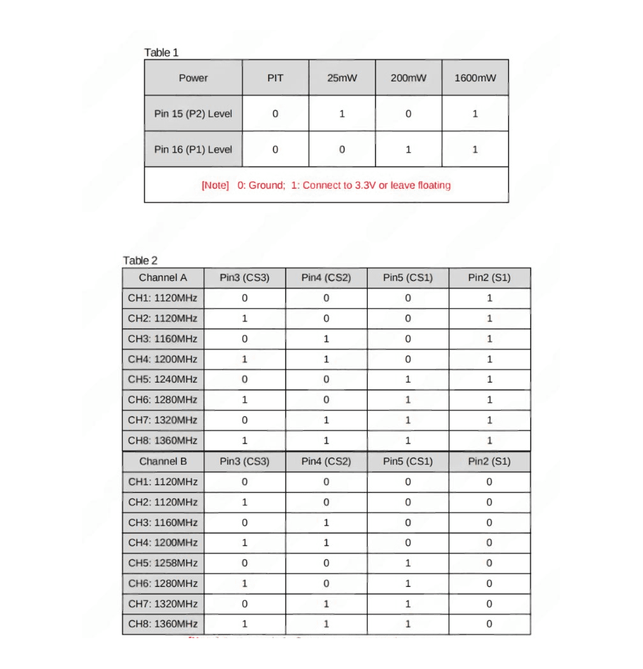 - Channel Frequency: A: 1120/1120/1160/1200/1240/1280/1320/1360(MHz)